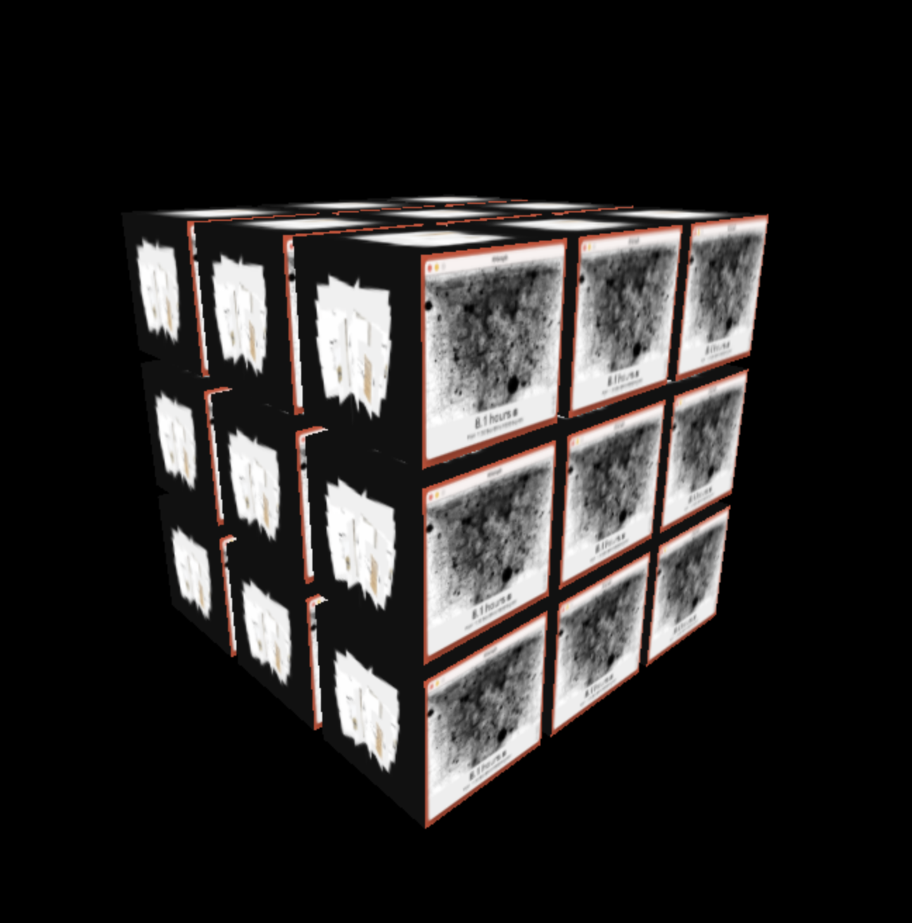 Starting with the idea of placing them in a 3x3x3 cube, this time I wanted to include content that I created myself in addition to Wikipedia pages, so I included reference photos that I had included while working on the project, and when clicked, an explanation was provided about what part inspired me and what the image is related to.