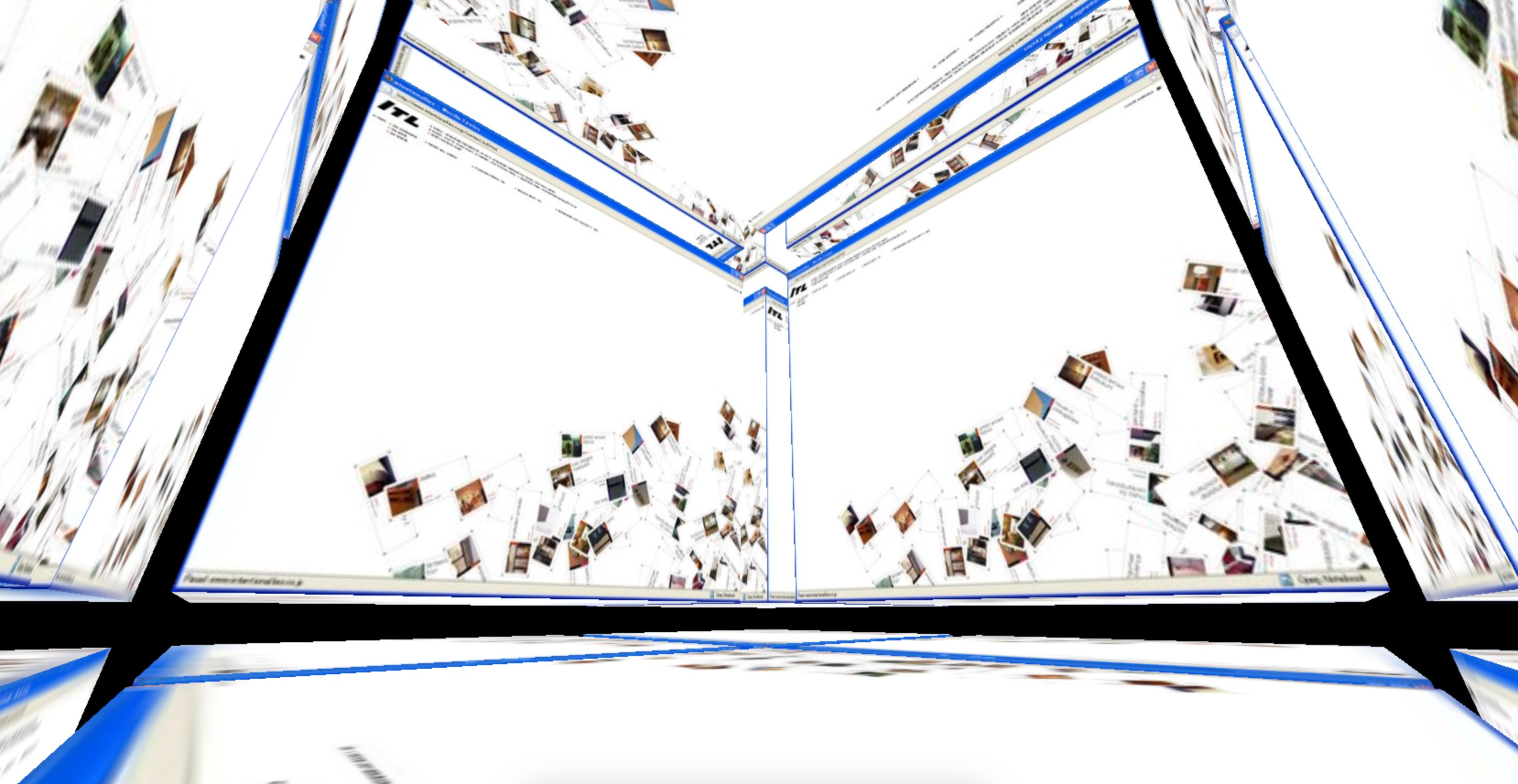 Based on previous sketches and Blender models, I attempted to create a new web layout by embedding pages into a 3D space, aiming for a form similar to the earlier sketches. However, it didn’t seem like much of an improvement compared to the WIKIcube I had made. The image shows the pages arranged in a circular pattern viewed from above. While the geometric shape was visually interesting, I decided to keep it as part of the process, feeling it diverged from my main objective.