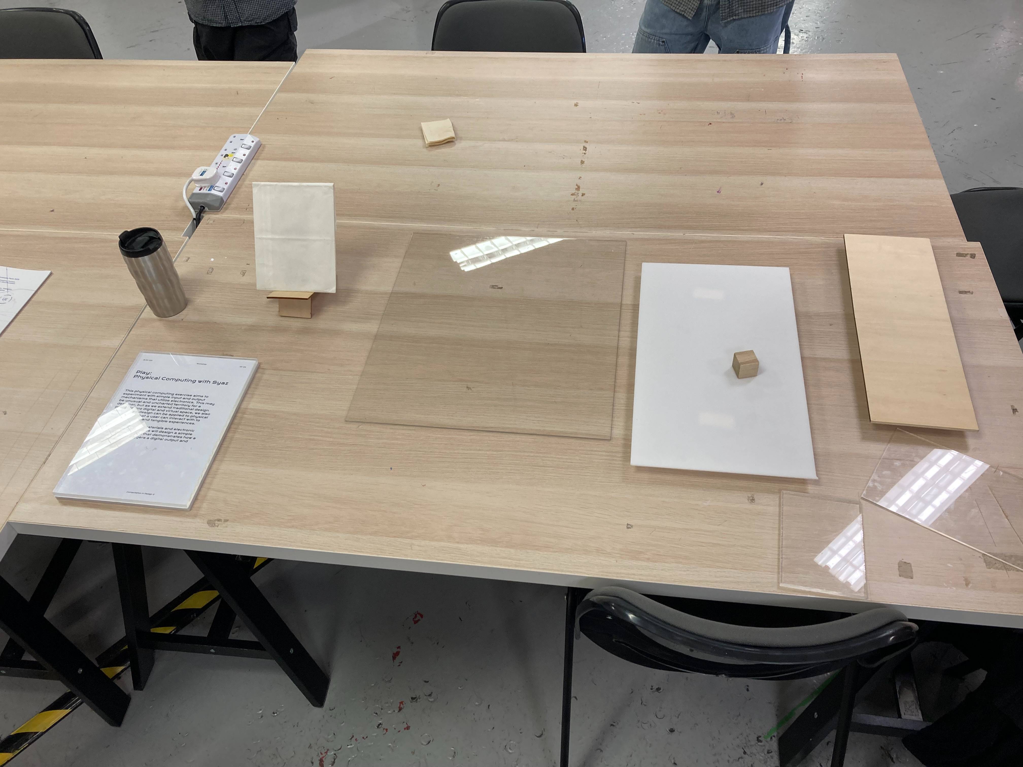 The table setup was conducted based on the experiments that we investigated and conducted over the past 7 weeks. Since it was based on what I had done over the past 7 weeks, I was able to figure out which parts had been created with my research in mind and which parts were lacking during the documenting process, which was good. Since it was my first time setting up a table, I organized it by arranging my laptop and images of my past work, and seeing the wood and acrylic setup that Andreas had prepared definitely gave it a professional feel.