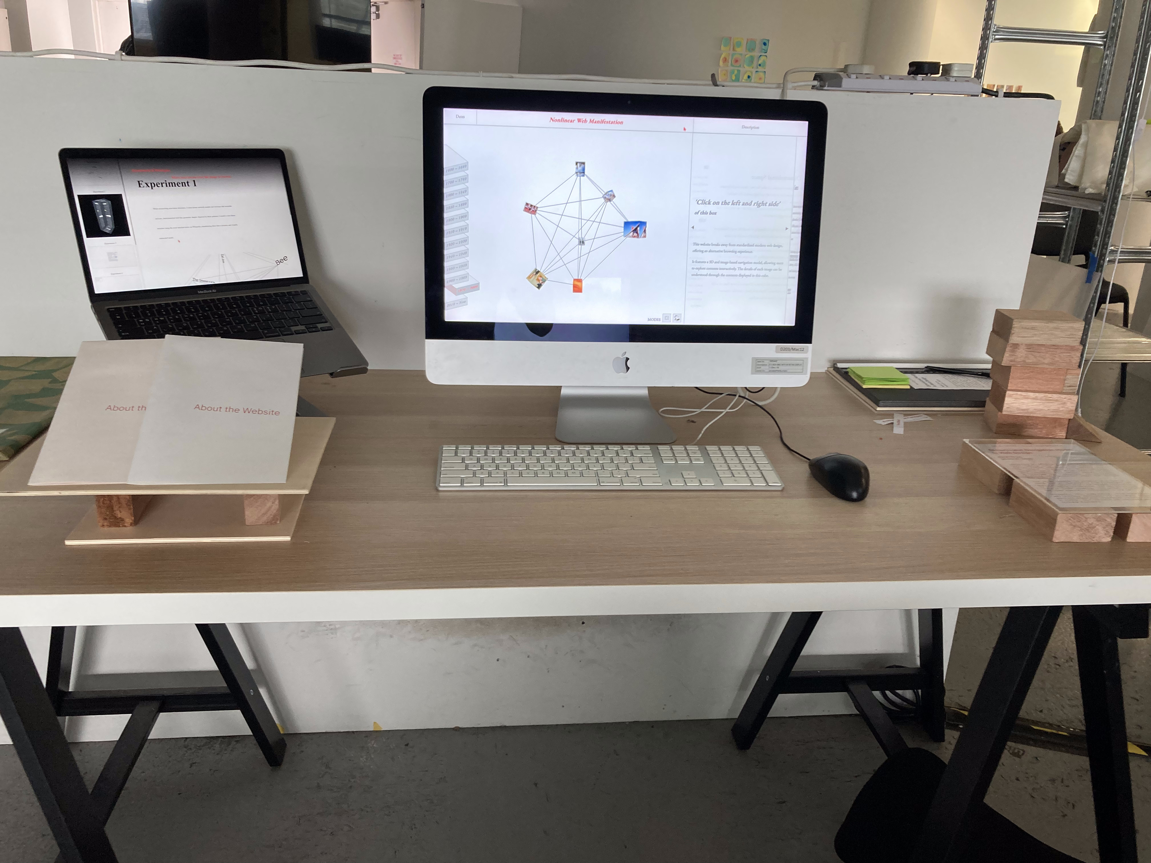 The main components of the open studio setup were the catalogue of making websites, a visual reference of my prototype 1-2 websites that will be displayed on the desktop, a booklet with brief explanations, and a video explaining the website.
