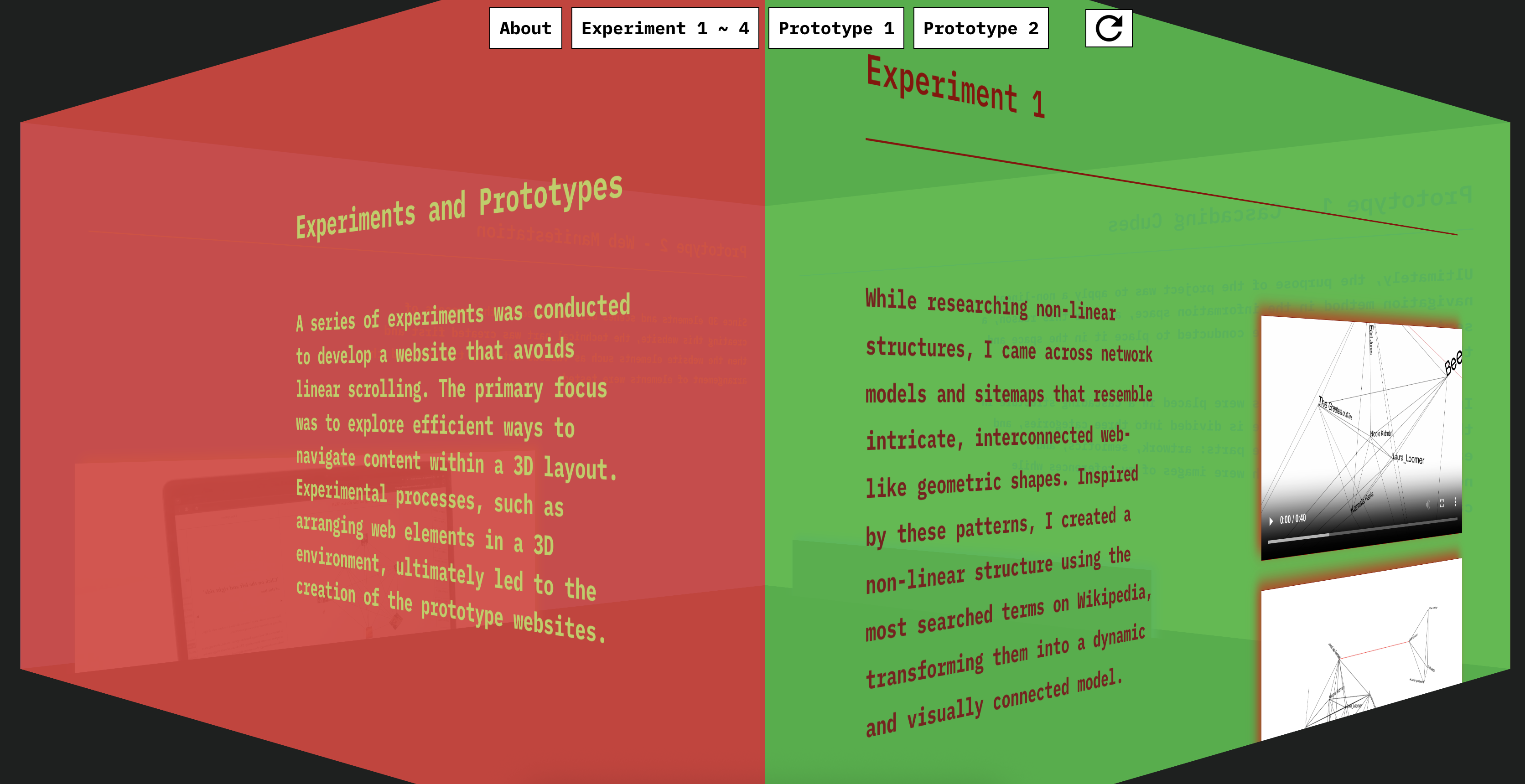 I received feedback that my project seemed similar to the work of Muriel Cooper, who experimented with placing text in 3D spaces in the early 2000s, as well as with ideas from Post-structuralism. Post-structuralism was explained to me in a simple way using the example of a hamburger: we usually think of a hamburger's structure as bun–lettuce–patty–bun, but even if the structure changes to bun–bun–patty–lettuce, the essence remains the same.I was told that this idea resembles my website, which removes the traditional scroll and breaks away from the typical structure of a website.